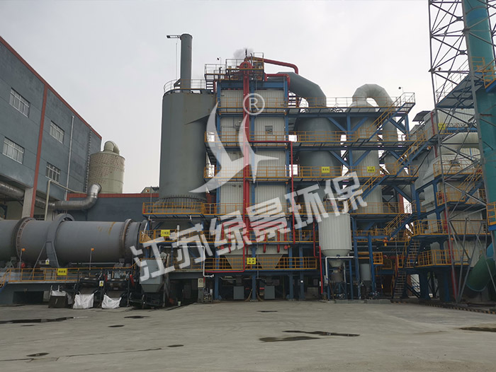 本系统采用“回转窑+二燃室”或“回转窑+二燃室+旋转炉蓖”的焚烧工艺,充分考虑到“3T+1E”等焚烧要素,保证危险废物的充分燃烧。回转窑选用顺流灰渣式焚烧形式,危险废物在窑内依次经过干燥、热解、燃烧和燃烬四个阶段,保证灰渣的热灼减量<5%。回转窑内热解产生的可燃气体进入二燃室,在二次风的作用下充分燃烧,焚烧温度达到1100℃以上,停留时间>2s(实际设计为3-4S)。